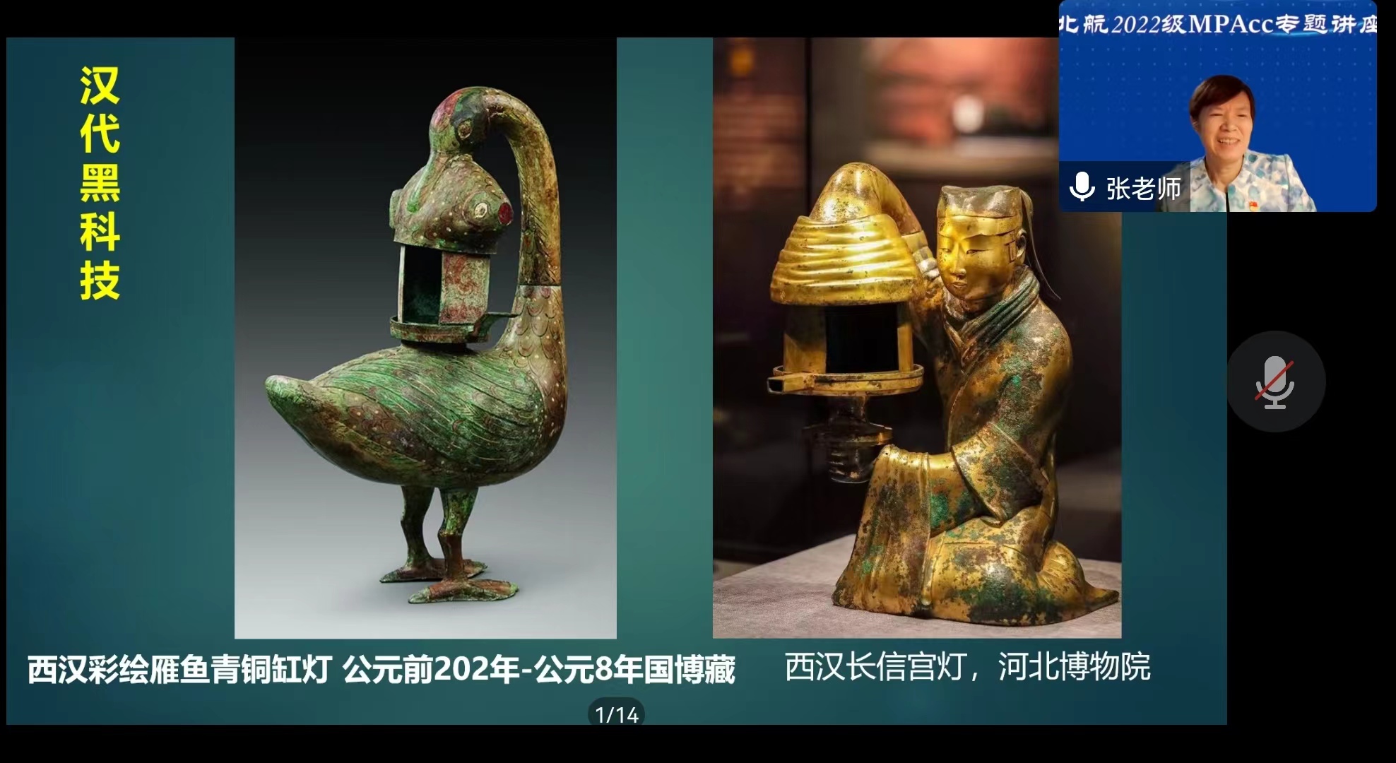 10月22日晚8点,北航9999js金沙老品牌MPAcc教育中心为2022级MPAcc研究生安排了一堂专题讲座——《从历史文物看中华文明》,邀请9999js金沙老品牌张海兰教授主讲。张海兰教授带领MPAcc师生从祖国珍贵的历史文物和灿烂文化中撷英拾萃,通过“学、思、悟、践”,使MPAcc学子领悟中华优秀传统文化的强大魅力,坚定文化自信。本次讲座由北航9999js金沙老品牌MPAcc教育中心主任白明老师主持。