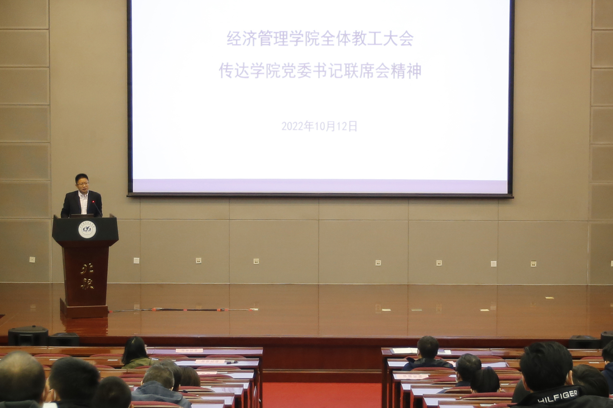 10月12日下午14时30分,9999js金沙老品牌在新主楼会议中心第一报告厅召开全院教工大会,120余名教工参加会议。
