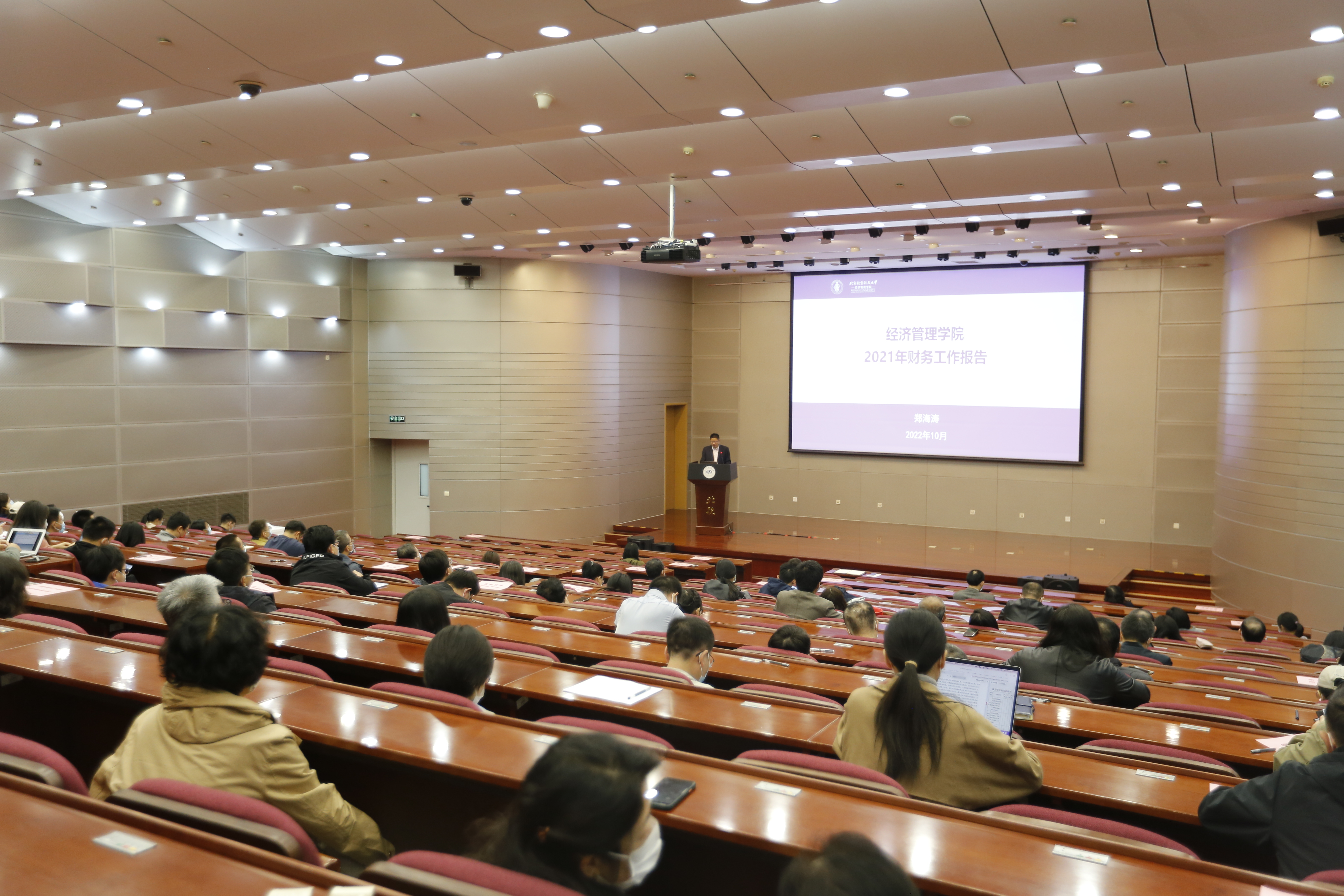 之后,郑海涛书记作2021年财务决算报告,对各业务部门的收入和支出构成进行了解读和说明。