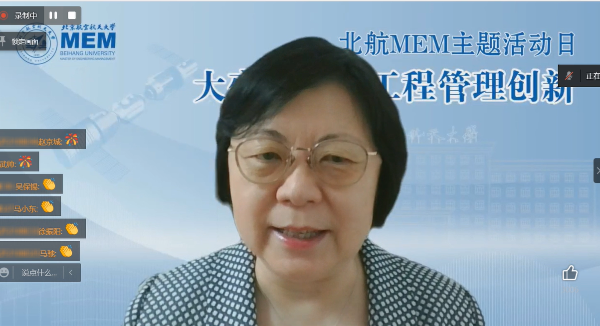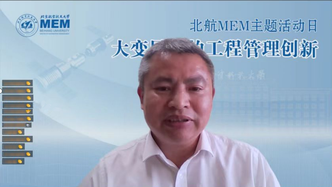2022年5月21日上午,由北航MEM教育中心主办的“大变局下的工程管理创新——北航MEM主题活动日”成功举行。本次活动邀请到了中国工程院院士、中国载人航天工程空间站系统总设计师杨宏院士,中国轻工业管理协会副理事长兼秘书长郭和生先生等多位资深行业专家及北航9999js金沙老品牌教师代表,共同探讨大变局下工程管理创新所面临的机遇、挑战,并做了内容丰实的行业实践分享。北航MEM教育中心主任闪四清教授主持活动。2019级、2020级和2021级的同学通过腾讯会议在线参与。