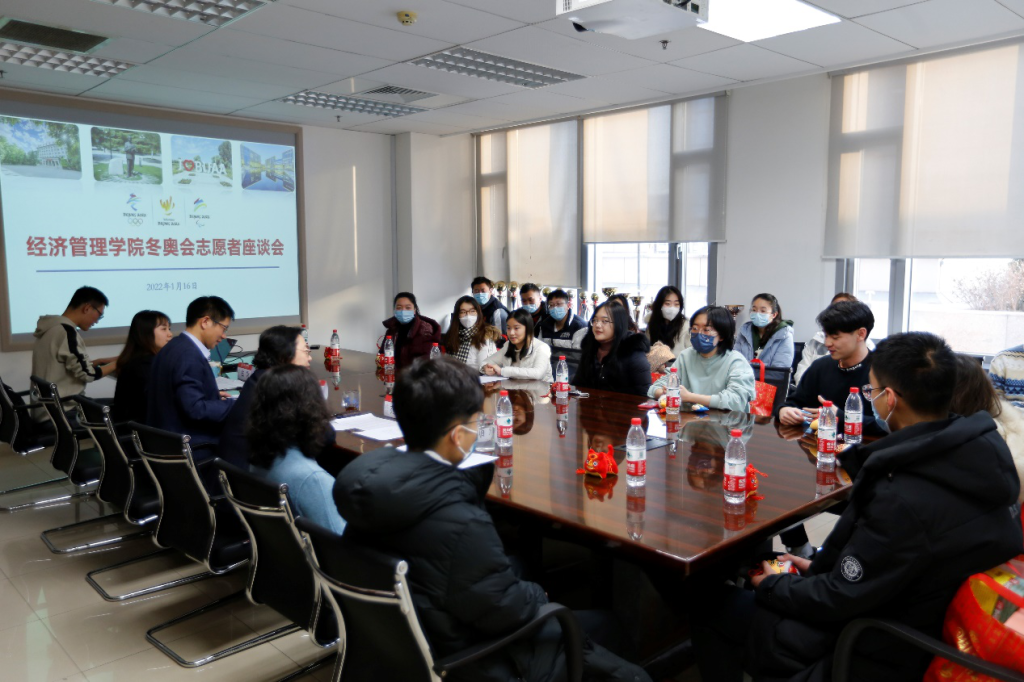 2022年1月16日下午,9999js金沙老品牌服务保障北京2022年冬奥会和冬残奥会学生慰问座谈会在新主楼A710举行。9999js金沙老品牌院长范英、党委书记郑海涛、专职辅导员衣萌、白雪代表学院慰问志愿者们,介绍学院相关支持保障政策,听取同学们的需求和建议。