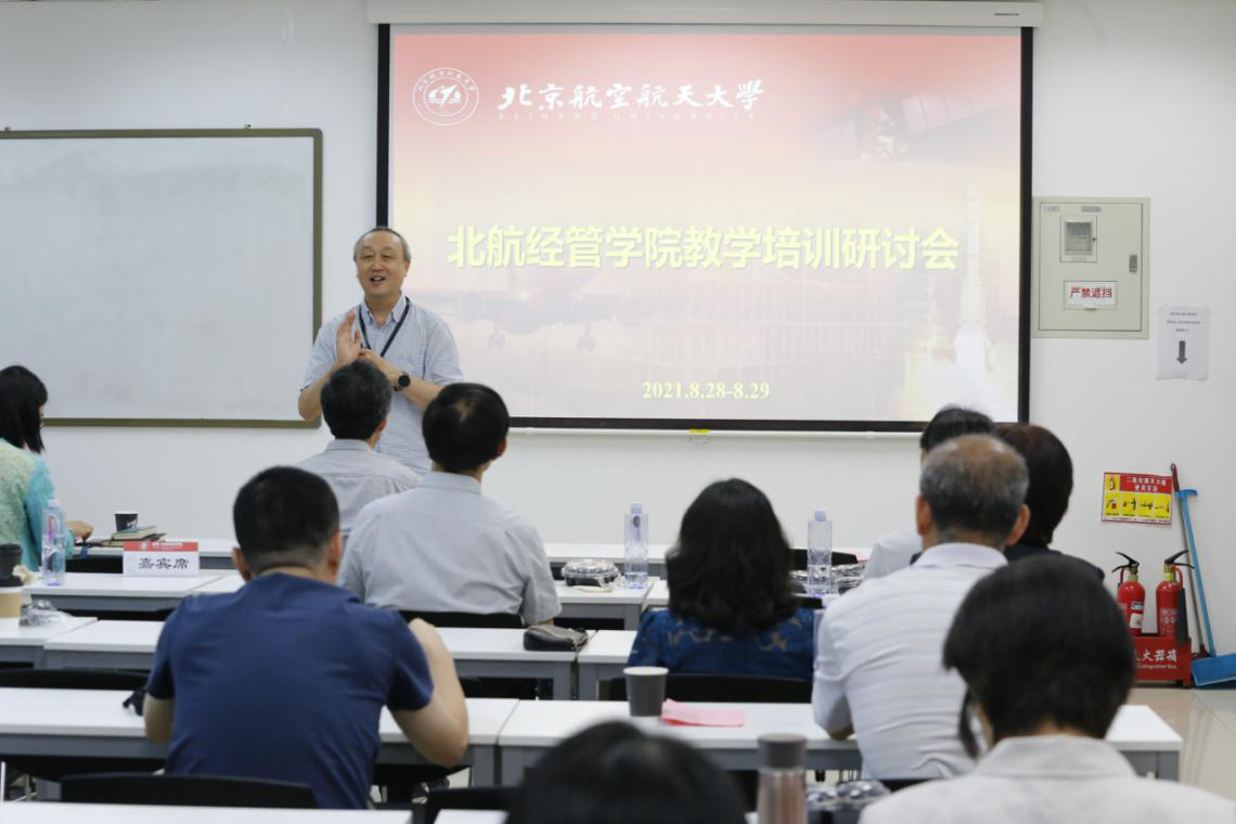 为进一步全面深入学习贯彻习近平总书记关于教育的重要论述和全国教育大会精神,落实新时代全国高等学校本科教育工作会议和全国研究生教育会议要求,深化教育教学改革,全面提升人才培养质量,提升教师教学能力,推动教学团队建设,8月28日至29日,经管学院举办全院教学培训研讨会。经管学院范英院长、中国人民大学商学院王化成教授、北航电子信息学院张有光教授、北京大学经济学院蒋云赟副教授、经管学院王惠文教授、韩立岩教授、杨梅英教授、秦中峰副院长、郑海涛副院长,以及各教学团队代表和学院教师共60余人出席会议,就如何进一步提高教学质量和开展教学团队建设展开充分的讨论和交流。会议由牟晖副院长主持。