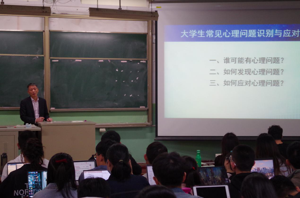 马喜亭老师最后讲述了如何应对心理问题,类比中医中的“望闻问切”诊疗方式,提出了在服务身边同学时的“问听陪劝转报”六字方法,多关心身边同学,在宿舍、班级中多一份善举,或许就能帮助他人许多。讲座结束后,同学们踊跃提问,与马老师就助人原则、助人技巧、自我调节等进行了细致的交流。