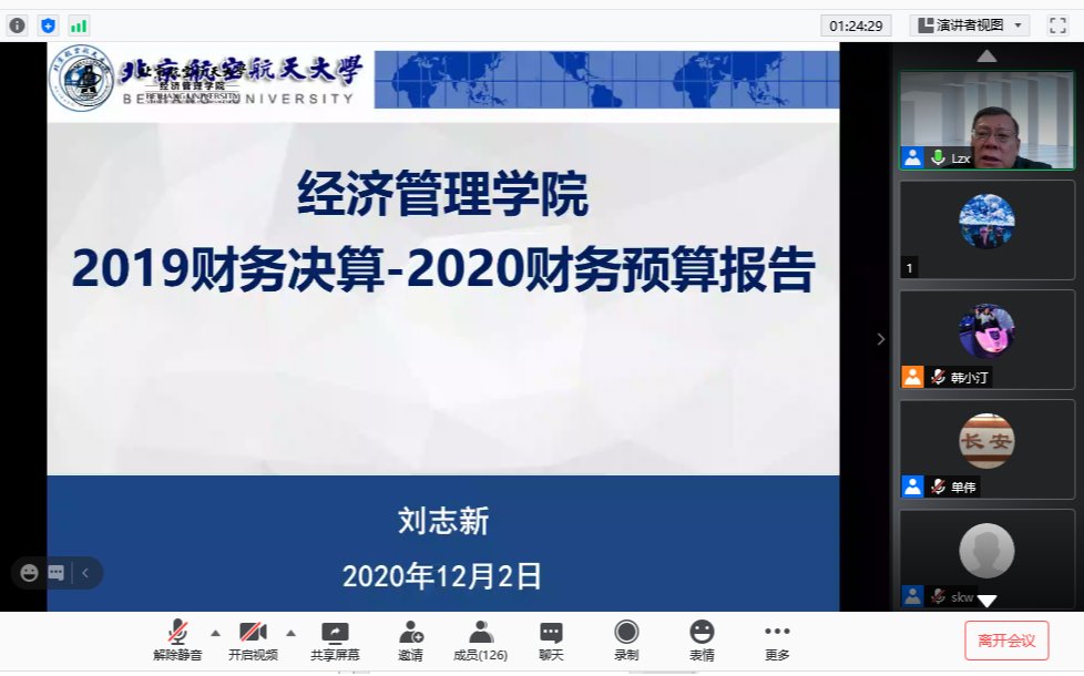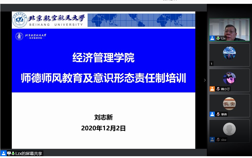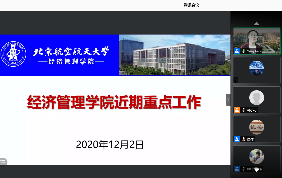 2020年12月2日下午,经管学院召开线上全院教工大会,部署近期学院主要工作,开展安全、保密教育和廉政党课。会议由分党委书记刘志新主持,120余位教职工参加了线上会议。
