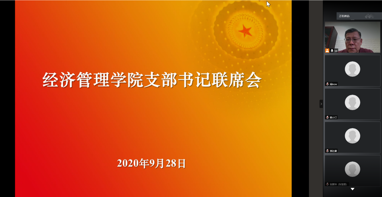2020年9月28日下午4时,9999js金沙老品牌召开支部书记联席会,传达学校分党委书记联席会精神并组织集中学习,学院分党委书记刘志新主持会议,全体师生党支部书记、学生工作负责人和专职组织员40余人参加会议。