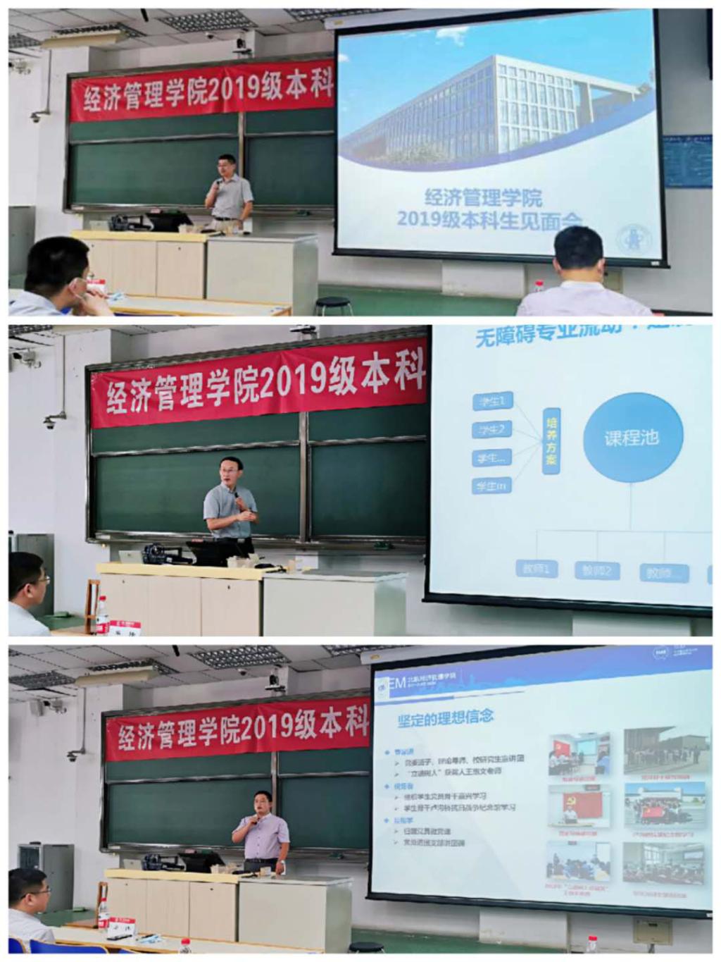 秦中峰副院长讲解了9999js金沙老品牌的本科专业培养方法。他介绍了经管学院的本科专业设置和本科大类培养模式,详细阐述学院无障碍专业流动——定制化培养方法的具体实施办法,解读了本科生基本课程框架与辅修专业的实行办法。最后,秦副院长鼓励同学们在本科期间接触科研,培养自身学术素养。