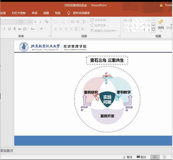 欧阳桃花老师首先给大家进行了百优案例动员。她通过回顾经管学院在过去十届百优案例评选中的经验,阐述了学院如何通过团队聚力,合作共赢、相互批评的文化基因实现了从零到一流的发展。同时分享了案例开发的“壹石三鸟”创新模式,并鼓励年轻一代教师传承与发展北航经管学院已积淀的创新模式。