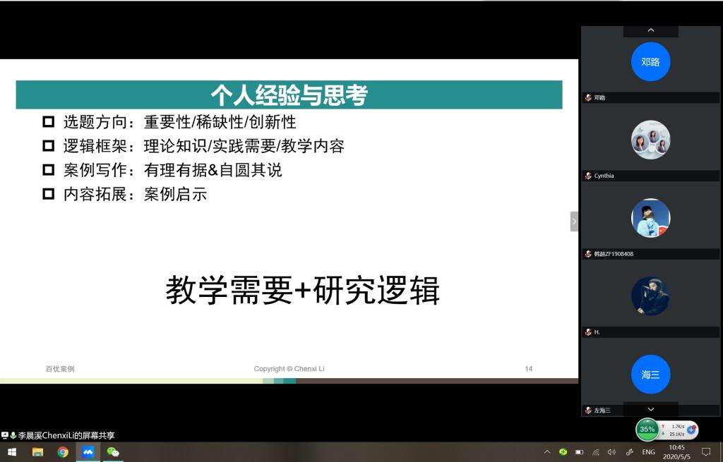 李晨溪老师从选题方向、逻辑框架、案例写作、和内容拓展四个方面对获奖常规案例和微案例进行了详细的阐述,并将案例撰写经验总结为“教学需要+研究逻辑”。