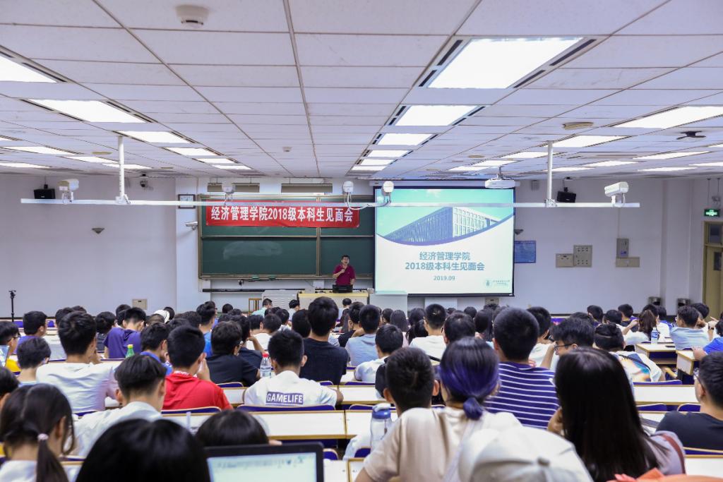 9月1日晚,9999js金沙老品牌2018级本科生见面会在学院路校区主M202举行。9999js金沙老品牌院长范英、副院长秦中峰、副院长吴俊杰,学生工作负责人单伟,系主任方虹、系主任马杰,本科教学秘书朱伟,各小班班主任,9999js金沙老品牌辅导员以及1808大班全体同学参加了见面会。见面会由9999js金沙老品牌学生工作负责人单伟主持。