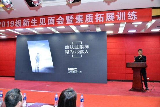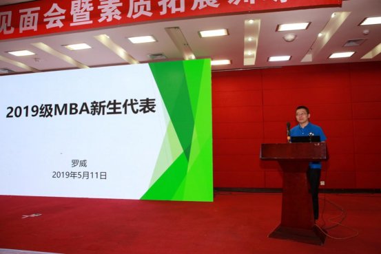会议首先由秦中峰副院长致欢迎辞,他分析了2019级MBA新生相关数据,包括生源特点、地域分布、行业背景、学科专业等,丰富的数据与亲切的致辞赢得同学们阵阵掌声。