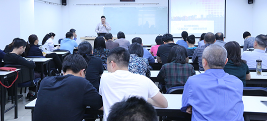 最后,实验中心副主任曹明向与会人员进行了消防安全培训。他围绕火灾危害及案例警示、新主楼常见消防设施及使用方法、办公室内常见消防隐患、火场逃生和灭火器的使用方法,图文并茂进行了详细解读,提醒与会人员在面对火灾时,要沉着应对,切实掌握基本的火灾逃生技能。