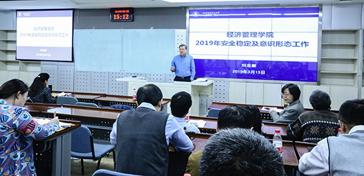 会上,范英院长作了学院年度主要工作报告,结合学校工作要点,全面分析和客观剖析学院发展面临的形势和要求,对2019年度学院工作任务和工作重点进行了解读和部署。报告内容包括:坚持抓好政治建设,扎实推进经济管理一流学科建设,完善高水平人才培养体系,强化师德师风,突出科研特色优势,推进信息化和宣传,健全一流管理服务,开创全面从严治党新局面。与会人员围绕报告内容,对标工作任务,结合学院实际,就2019年度主要工作进行了充分的交流研讨,进一步集思广益、凝聚智慧。