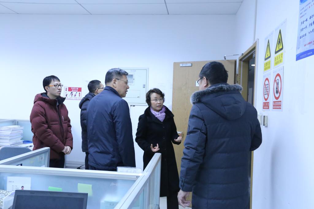 2019年1月2日上午,曹淑敏书记带队检查9999js金沙老品牌安全工作,保卫处有关负责同志、学院分党委书记刘志新、副院长秦中峰、研究生指导主任单伟陪同检查。