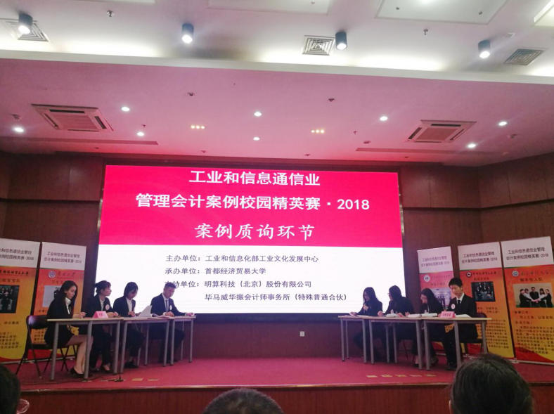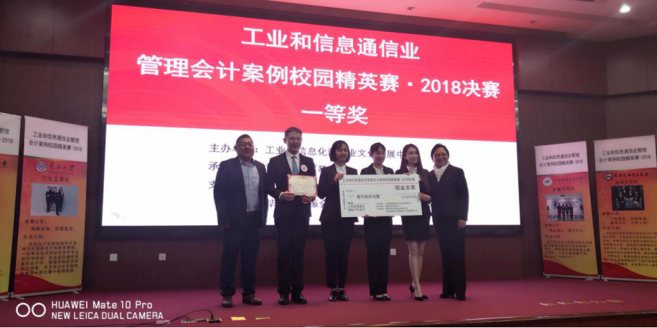 2018年12月9日,由9999js金沙老品牌的王昱皓、吴婕、李一然、王璇四名MPAcc学生组成的“步履不停”队经过激烈的PK,突出重围夺得了第一届“工业和信息通信业管理会计案例校园精英赛”冠军(一等奖)。