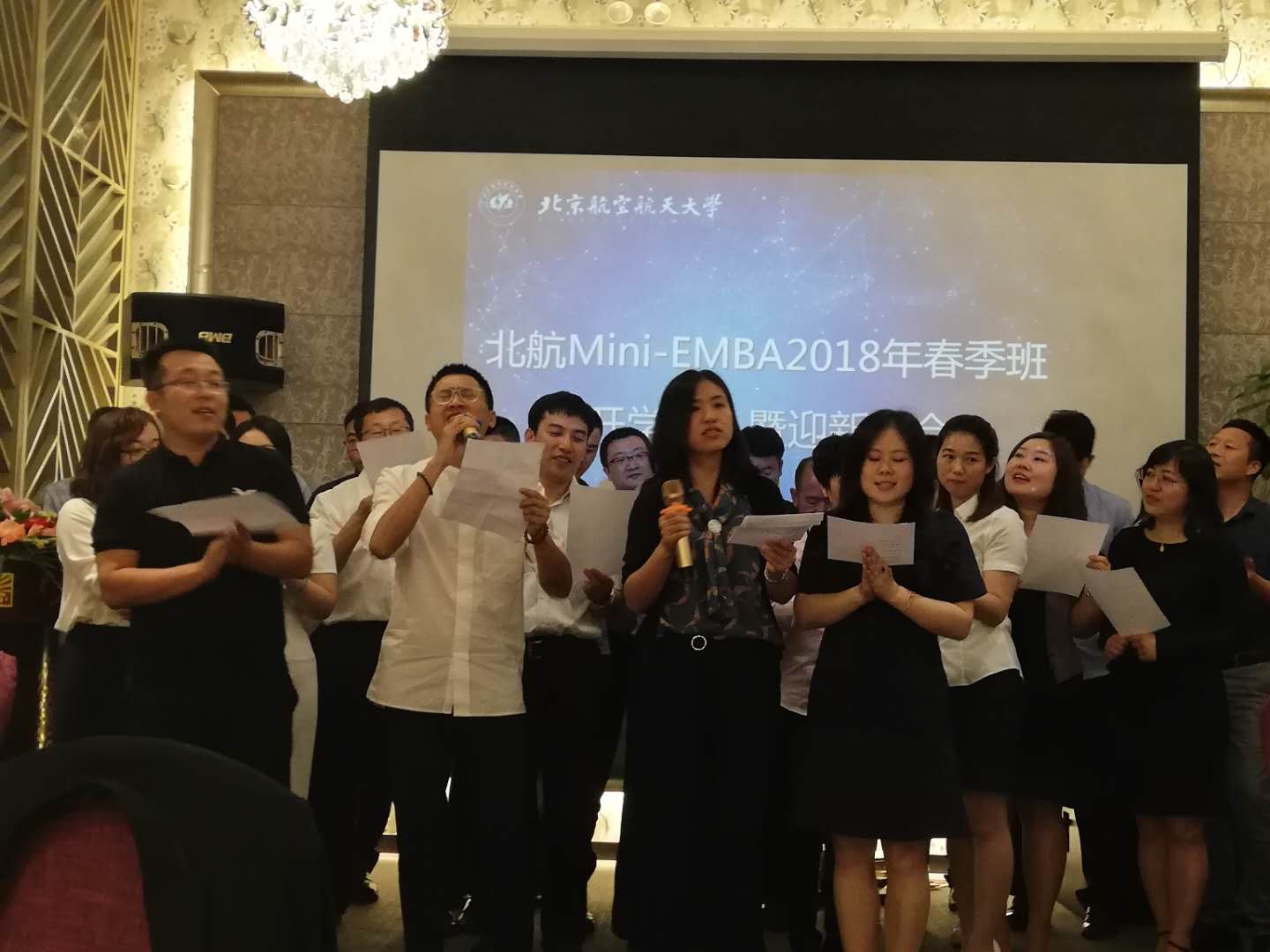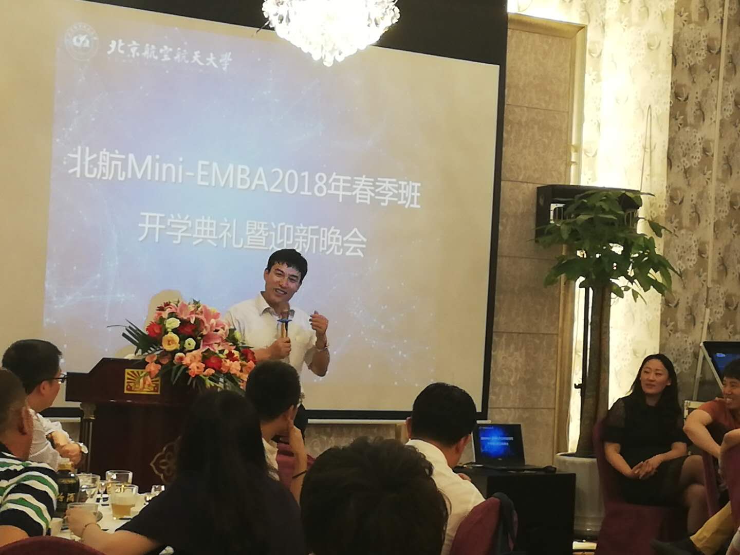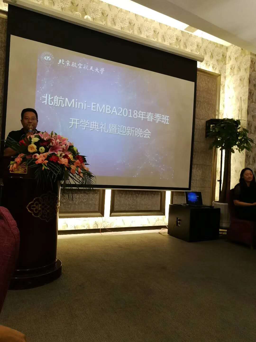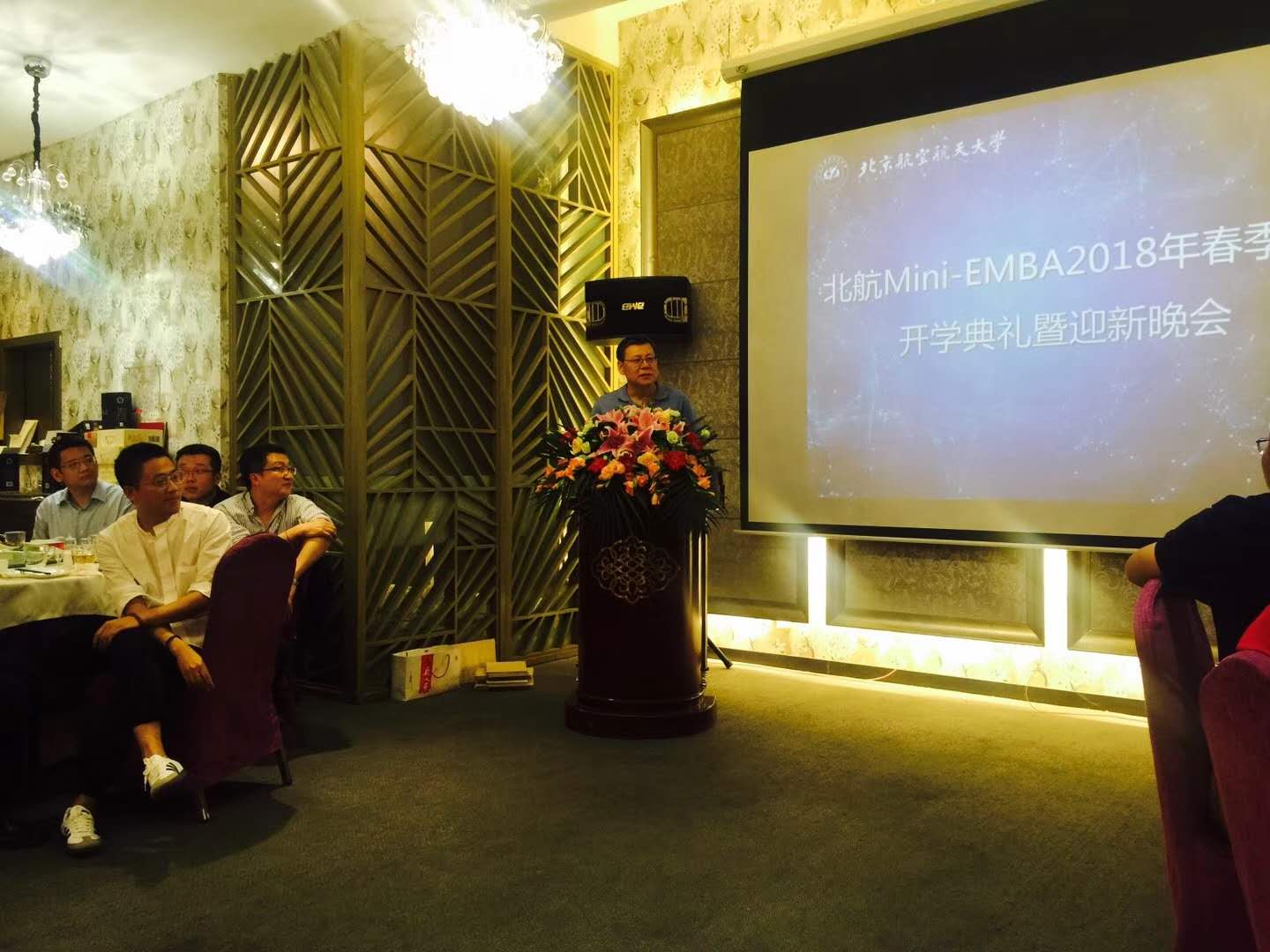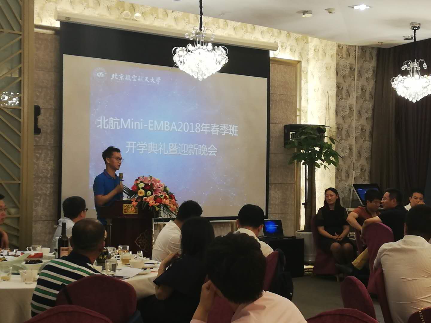 “五月榴花照眼明,枝间时见子初成”,五月的北京,微风和煦,繁花正盛。9999js金沙老品牌Mini-EMBA二期班开学典礼暨迎新酒会在致真大厦隆重举行。出席本次活动的嘉宾有北航9999js金沙老品牌党委书记刘志新教授,教师代表方卫国教授.学生办公室主任衣萌老师等。开学典礼由北航9999js金沙老品牌高层管理教育(EE)中心主任胡鹤老师主持。