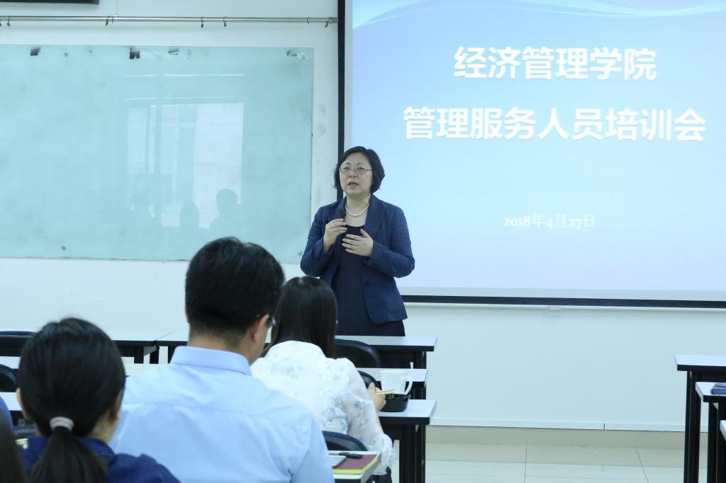 为进一步提高学院行政管理人员服务意识、业务能力和综合素质,助力学院双一流学科建设,经管学院于2018年面向全体行政管理人员组织专题培训。首次培训于4月27日在新主楼A1028举行,北航党政办李建伟副主任应邀为学院机关人员做了题为“身在兵位 胸为帅谋——谈谈机关工作规范”的专题讲座,经管学院范英院长、牟晖副院长及学院行政管理人员近五十人参加了培训会。