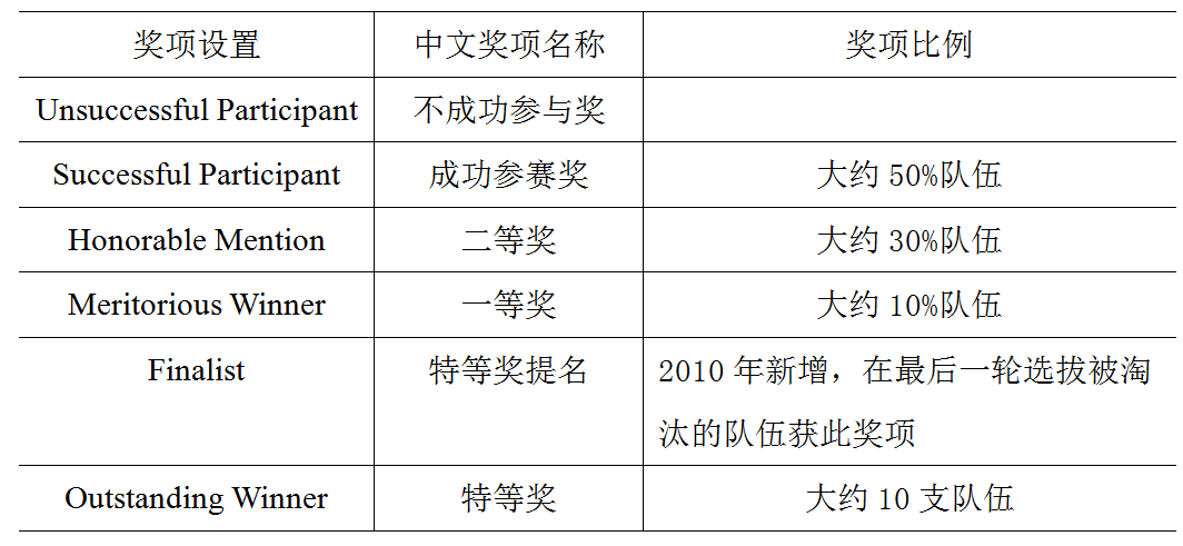 美国大学生数学建模竞赛(MCM/ICM)由美国数学及其应用联合会主办,是唯一的国际性数学建模竞赛,也是世界范围内最具影响力的数学建模竞赛。赛题内容涉及经济、管理、环境、资源、生态、医学、安全、未来科技等众多领域。竞赛要求三名本科生为一组,在四天时间内,就指定的问题完成从建立模型、求解、验证到论文撰写的全部工作,体现了参赛选手研究问题、解决方案的能力及团队合作精神。为现今各类数学建模竞赛之鼻祖。它与其他重要的数学竞赛不同的地方在于此竞赛着重于研究、创意、团队合作、沟通以及结果的辩护。因此,竞赛题目也没有标准答案。其中,赛事奖项“Outstanding Winners”(特等奖,俗称“O奖”)是该项赛事的最高奖项,2018年共有来自全球1443所高校的20601支队伍参赛,其中16支队伍获得MCM特等奖、17支队伍获得ICM特等奖,获奖率仅为0.16%,而其中获得COMAP奖金的队伍更是只有四支,获奖率低至万分之二,极低的获奖比例使该奖项在国内的数学建模界中具有一定的“传说色彩”。