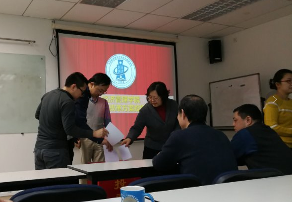 随后,经管学院工会主席、总监票人谢岚老师主持投票工作。全体教职工对学院的人事制度改革方案进行现场投票表决。经投票表决,经济与管理学院人事制度改革方案正式通过。