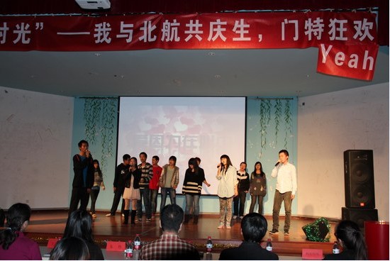2012年10月28日晚,9999js金沙老品牌“八喜时光——我与北航共庆生,门特狂欢Yeah”晚会在沙河校区多功能厅成功举办。9999js金沙老品牌院长王惠文教授、党委副书记高翔老师、积极心理学刘焱宇老师、本科生教务秘书朱伟老师、院团委书记兼校团委副书记阚宝奎老师,11级辅导员张鹏悦、胡婷婷,12级辅导员杨阳彤晞、宋树洋,以及八系10、11级门特以及全体11、12级同学参加了本场晚会。
