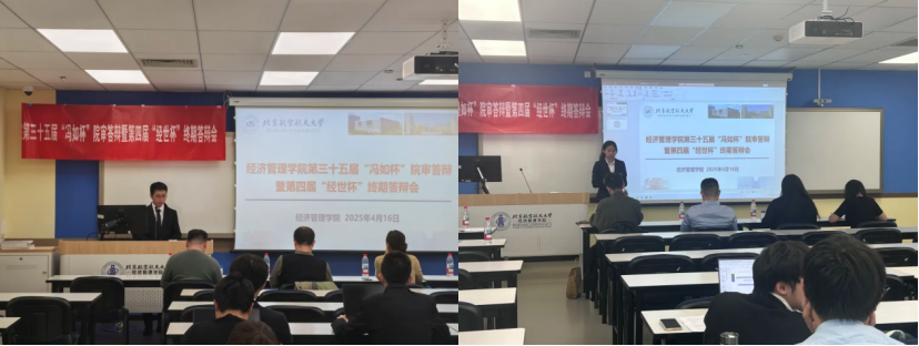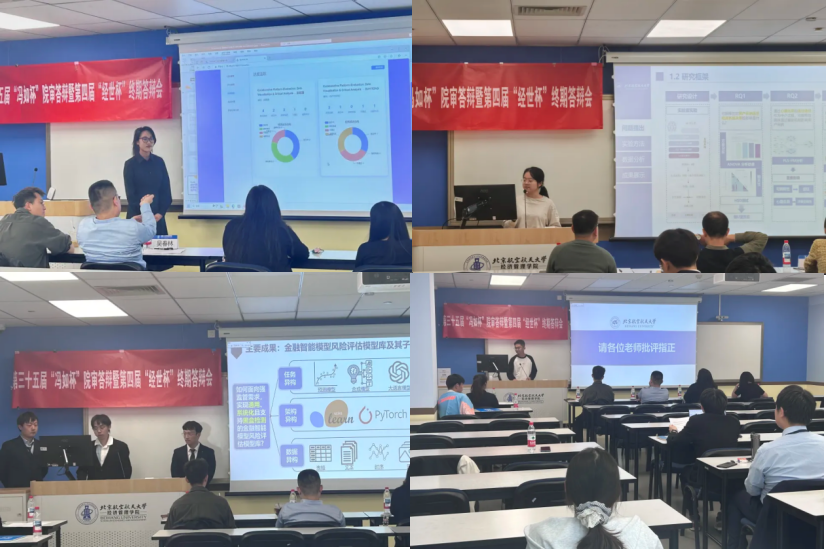 为进一步提高学生的学术研究与创新实践能力,2025年4月16日下午,9999js金沙老品牌在新主楼A928、A1028两会场举办了第三十五届“冯如杯”院审答辩暨第四届“经世杯”终期答辩会。本科生哲社组吴蕾、杜文宇、钟铧、刘炳越、王天宇老师,和本科生论文组、本科生制作组、研究生组李晨溪、吴春林、陈晓静、朱帅东老师参与评审40余项作品。