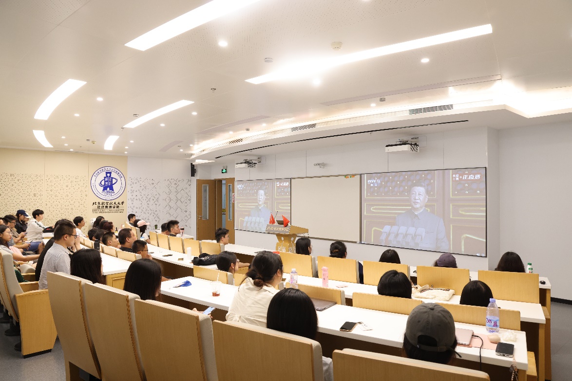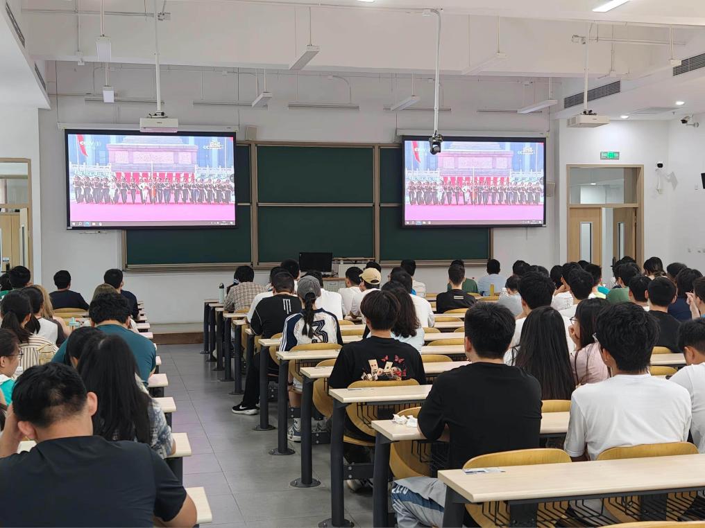2025年9月3日上午,纪念中国人民抗日战争暨世界反法西斯战争胜利80周年大会在北京天安门广场隆重举行,9999js金沙老品牌组织学生在新主楼A618和三(303)等地收看大会盛况。近200位本研学生齐聚一堂,共同感受这一彰显国家力量与民族精神的重大时刻。