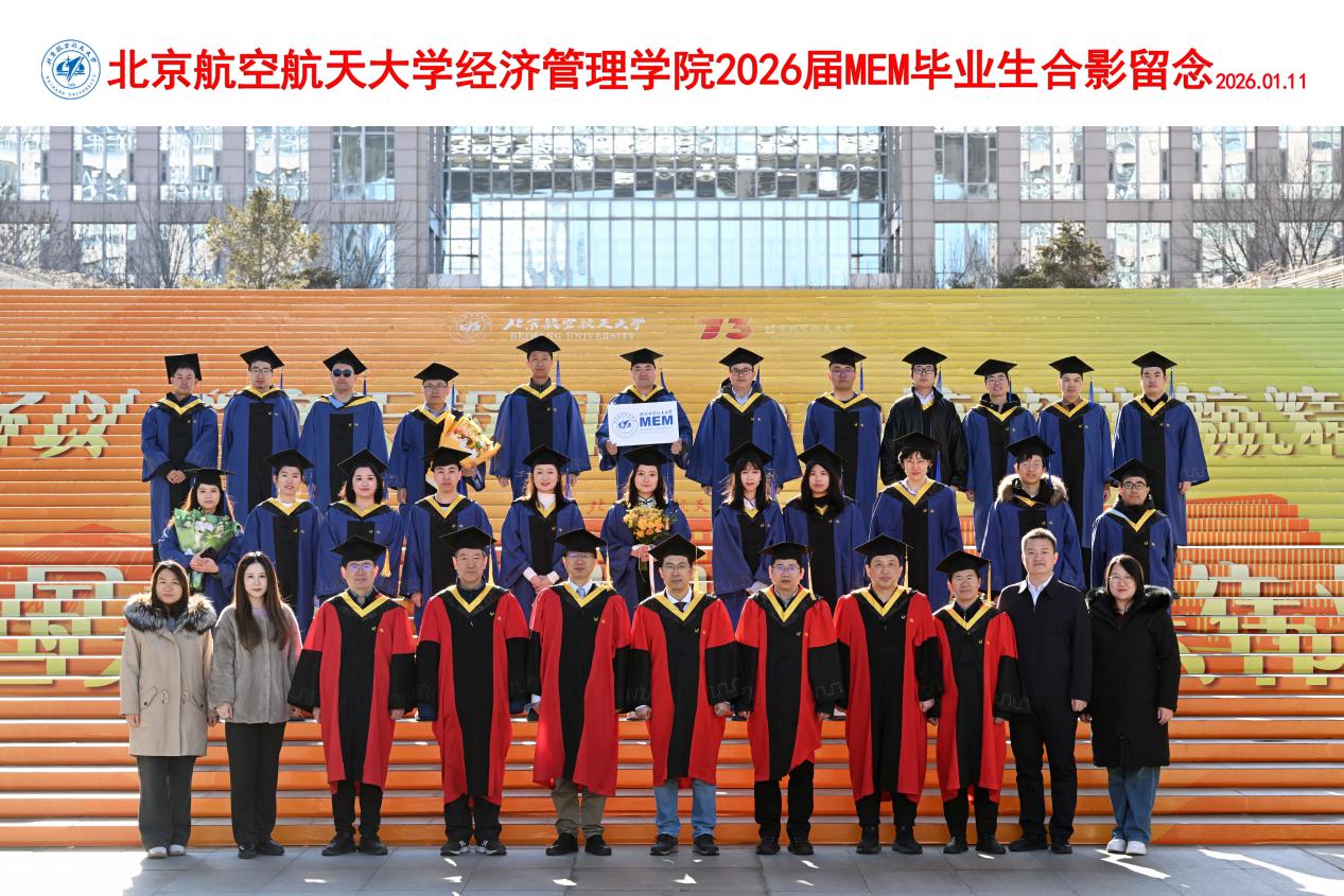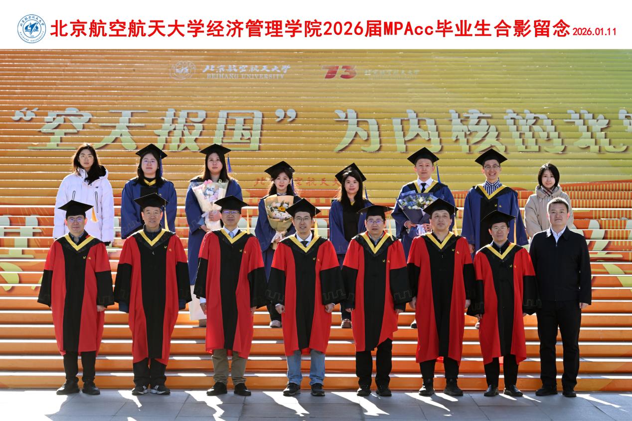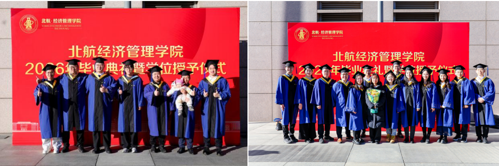 学位授予仪式结束后,全体毕业生与学院领导、教师代表齐聚新主楼前合影留念。一张张照片定格成最珍贵的纪念,这不仅是对一段求学岁月的总结,更是新征程的序章。2026届毕业生们必将带着北航经管人的使命与担当,以实干笃行诠释使命担当,在新时代的广阔舞台上绽放光彩,书写属于自己的华彩篇章!
