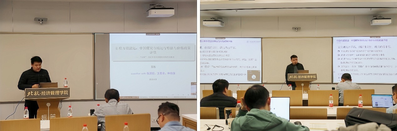 第二半场的学术交流邀请了三个学术报告,并由评论人对论文进行了点评。南京大学苏彤副研究员做了题为“行稳方能致远:中国煤炭市场运行特征与价格政策评估”的报告,该报告探讨了作为中国能源安全的“压舱石”的煤炭,在积极稳妥推进碳达峰、碳中和目标进程中发挥重要作用。北航经管应用经济系的刘炳越副教授对这篇论文进行了点评。南京财经大学的孔傲博士做了题为“高频交易、算法趋同与个股流动性—来自上交所Level-2行情中断自然实验的证据”的学术报告,该论文主要是研究了中国市场高频交易对股市流动性的影响。北航经管金融系杨海军教授对这篇论文进行了点评。北航王论意博士做了题为“Probabilistic Optimism and Price Inertia”的学术报告,该论文主要是构建理论模型解释价格惯性。北京化工大学张强教授对这篇论文进行了点评。第二半场的学术论文交流由北航金融系洪洁瑛副教授主持。