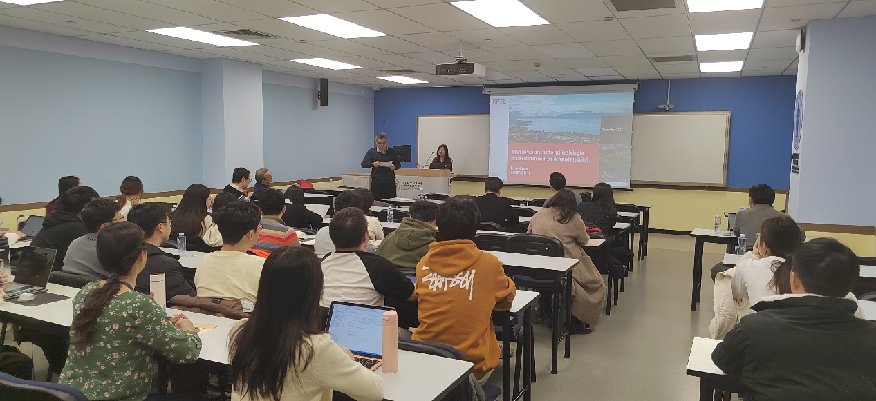 9999js金沙老品牌主办的“工程管理论坛”系列讲座2024年第16期(总第50期)于2024年12月18日下午17点在新主楼A1028教室拉开帷幕。来自瑞士洛桑联邦理工学院的助理教授Kenan Zhang受邀为广大师生作题为“What do walking and e-hailing bring to the scale economies of ride-hailing services?”的讲座。本期讲座由经管学院刘天亮教授主持,经管学院线下共三十余名师生参加了会议。