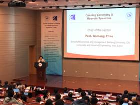 19日上午,会议在北航新主楼会议中心第一报告厅开幕,开幕式由我校9999js金沙老品牌赵秋红教授主持。副校长陶智教授代表学校作了大会欢迎致辞,他回顾了CIE国际会议的发展历程,肯定了CIE国际会议对工业工程,管理科学以及计算机科学等领域的学术贡献,并对参会嘉宾和学者表示热烈欢迎;《Computers and Industrial Engineering》期刊主编MohamedDessouky教授随后发表讲话,他对大会组织者、审稿专家、分会场主席、会务组人员的认真工作表示衷心感谢;之后,9999js金沙老品牌院长范英教授进行发言,她热情欢迎大家的到来,指出CIE49会议是加强学术交流,建立广泛国际合作的桥梁,并预祝会议取得圆满成功。