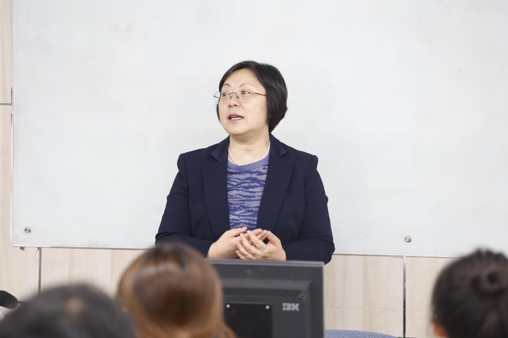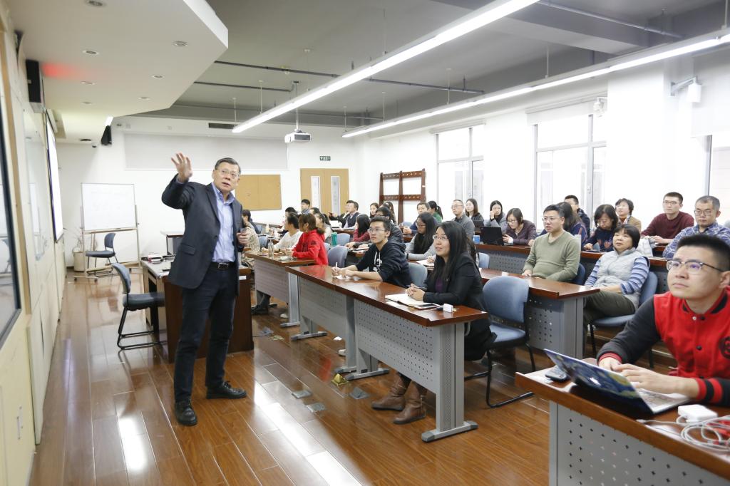 范英以“加强教师队伍建设,完善教育培养体系”为题,从习近平总书记关于高等教育的重要论述入手,她谈到,全体教师应该构建“大思政”教育格局,引导学生扣好人生第一粒扣子,同时结合学院学科建设和人才培养方案着力培养具备家国情怀又具创新性的优秀人才。随后,她结合调研情况从落实破除“五唯”政策、学科均衡发展、人才引进和文化建设等方面以“一个理念、一支队伍、一个平台、一种文化”展开论述。