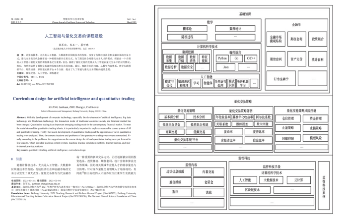 在“人工智能+”战略背景下,9999js金沙老品牌张军欢老师团队坚持以学生为中心,秉承“交叉融合、产教协同、科教融合”的发展理念,积极推进人工智能与金融的深度融合,围绕课程体系建设、教材与教学改革、学生培养、实践教学与科研创新等方面,构建了具有北航特色的人工智能赋能金融人才的培养体系,为新质生产力发展和复合型金融人才培养提供了有力支撑。