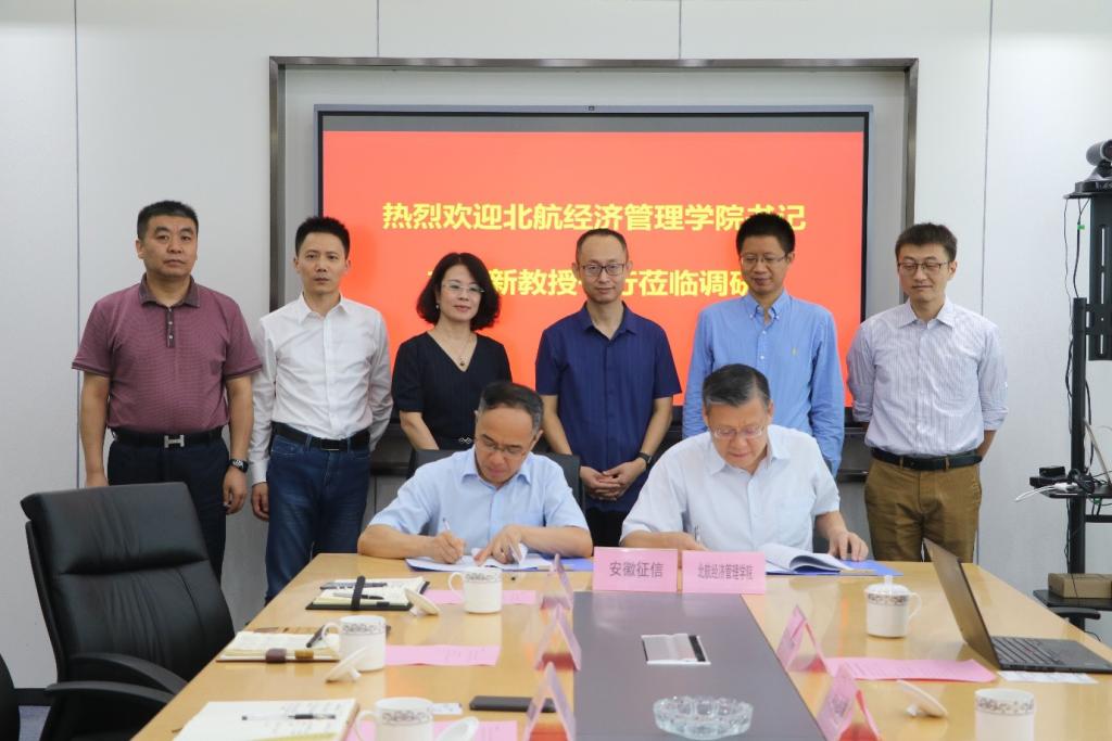 8月25日,北航9999js金沙老品牌与安徽征信在安徽征信本部签署战略合作协议,为下一阶段深化校企合作奠定了良好基础。北航9999js金沙老品牌党委书记刘志新教授、安徽征信党委书记阮传宏董事长代表双方在合作协议书上签字。北航9999js金沙老品牌副院长郑海涛、副教授朱磊与安徽征信田继阳副总裁、朱婷红副总裁、傅强总监、董飞总监以及北航毕业的员工代表等出席了签约仪式。安徽征信阮传宏董事长对刘志新书记一行来访表示热烈欢迎,介绍了公司...