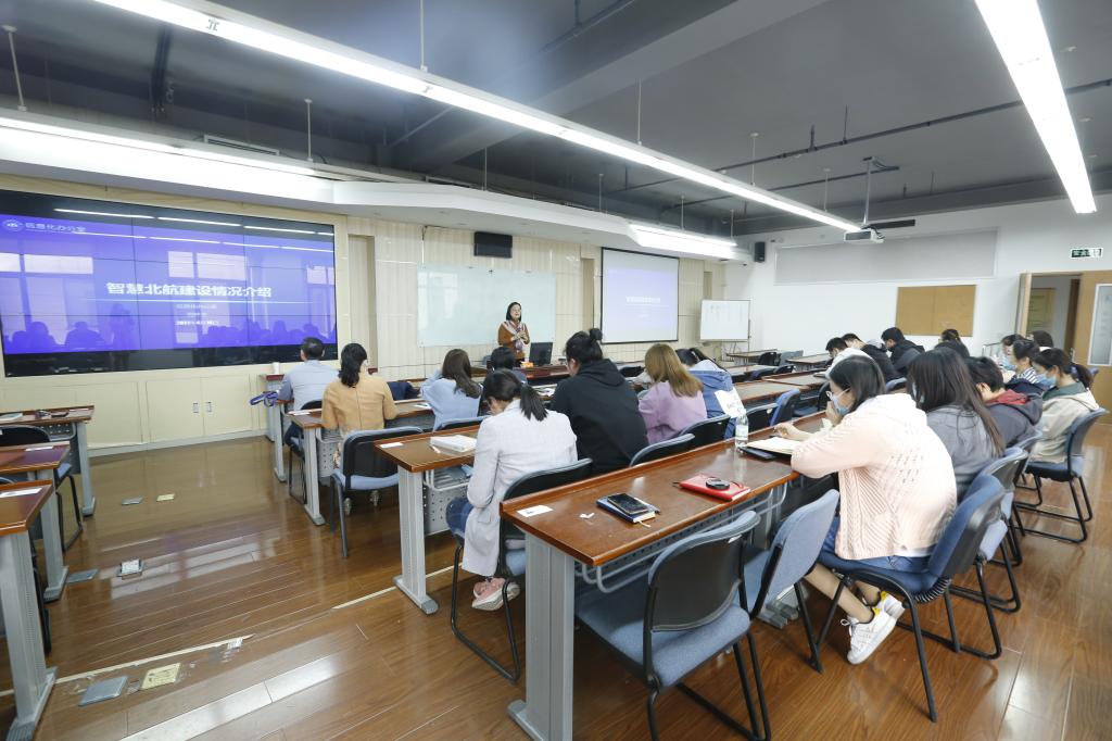 2021年4月14日中午,经管学院在新主楼A622举办机关信息化建设专题培训会,机关各部门近50位教职工参加了培训。会议由牟晖副院长主持。学院特别邀请到北航信息化办公室副主任周林志老师做主题讲座。周老师从基础设施、公共平台、数据中心、数字服务和网络安全五个方面详细介绍了我校智慧北航建设情况,对教工常用的OA系统、北航云盘、北航小程序等的使用进行了全面的解读,并以近期发生的网络安全事件为例,帮助参会教师树立对网...
